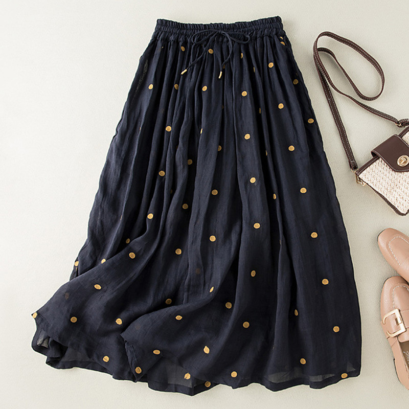 Women's Skirt A Line Fashion Casual Maxi High Waist Skirts Polka Dot Print Casual Daily Weekend Yellow Navy Blue Brown Green Summer Cotton And Linen