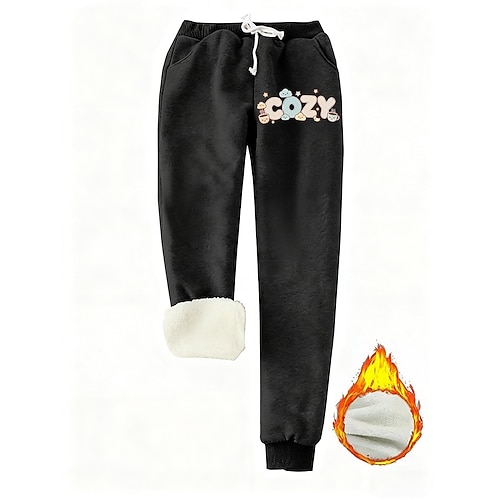 Per donna Pantaloni da tuta Pantaloni in Pile Pantaloni Eleganti Vacanza Moda Essenziale Lunghezza intera Vita Alta Lettera Coulisse Tasca Stampato Calore Termico Antivento Comodo Micro-elastico