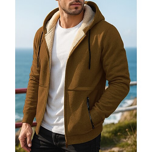 Per uomo Giacca con cappuccio Giubbino da escursione Giacca da sci Inverno All'aperto Tinta unica Tenere al caldo Ompermeabile Antivento Fodera di vello Soprabiti Giacche a vento Cappotto Campeggio e