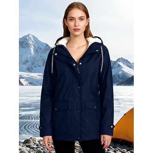 giacca antipioggia da donna impermeabile giacca da trekking in pile invernale all'aperto caldo impermeabile pile antivento parka con cappuccio tuta sportiva giacca a vento trench top zip intera sci pesca casual