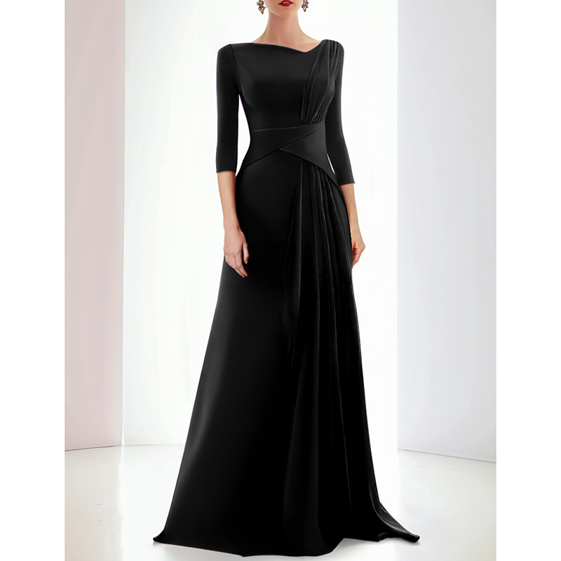 A-Line Floor Length Evening Gown Ball Gown Formal Dress Elegant Vintage Silky 3/4 Length Sleeve Off Shoulder Wedding Formal Pocket Satin with Bow(s)