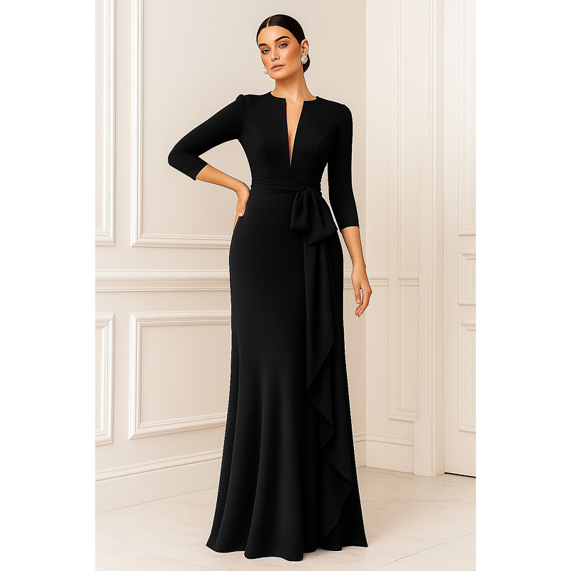 Sheath Column Floor Length Prom Dresses Evening Gown Ball Gown Elegant 3/4 Length Sleeve V Neck Wedding Formal Stretch Crepe with Ruffles