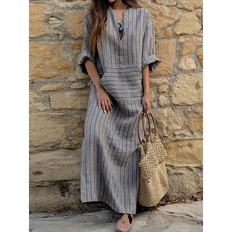 Women's Normal Maxi Dress Cotton Blend Stylish Casual Daily Vacation Regular Fit Graphic Long Sleeve Crew Neck Red Green Gray Spring Fall