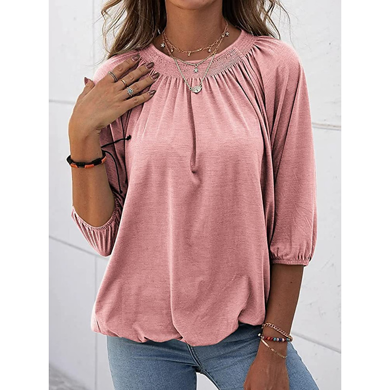 Women's T Shirt Plain Fashion Modern Casual 3/4 Length Sleeve Crew Neck Regular Tops Daily Weekend Blue Black White Pink Wine Summer Spring Fall