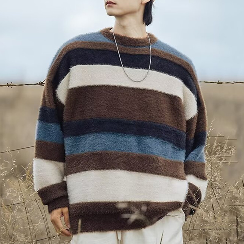 Men's Pullover Sweater Jumper Knit Sweater Ribbed Knit Regular Tops Knitted Stripe Crew Neck Fashion Basic Vacation Daily Wear Clothing Apparel Fall Winter Brown Apricot M L XL