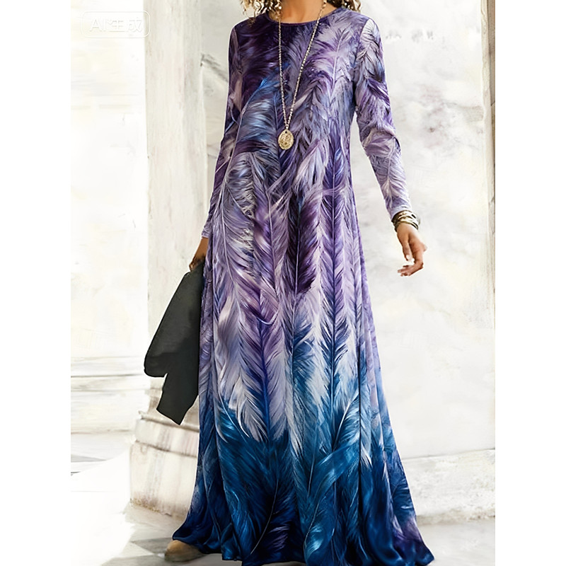 Women's Long Dress Maxi Dress Casual Dress Swing Dress Boho Dress Vintage Daily Outdoor Weekend Regular Fit Floral Long Sleeve Crew Neck Purple Spring Fall Winter