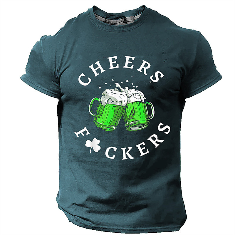 St. Patrick Men's Shamrock Beer Lucky Irish T Shirt T shirt Tee Short Sleeve T shirt 3D Print Crew Neck Shirt Daily Designer Casual Sports Outdoor Holiday Going out Black Blue Green Spring Summer