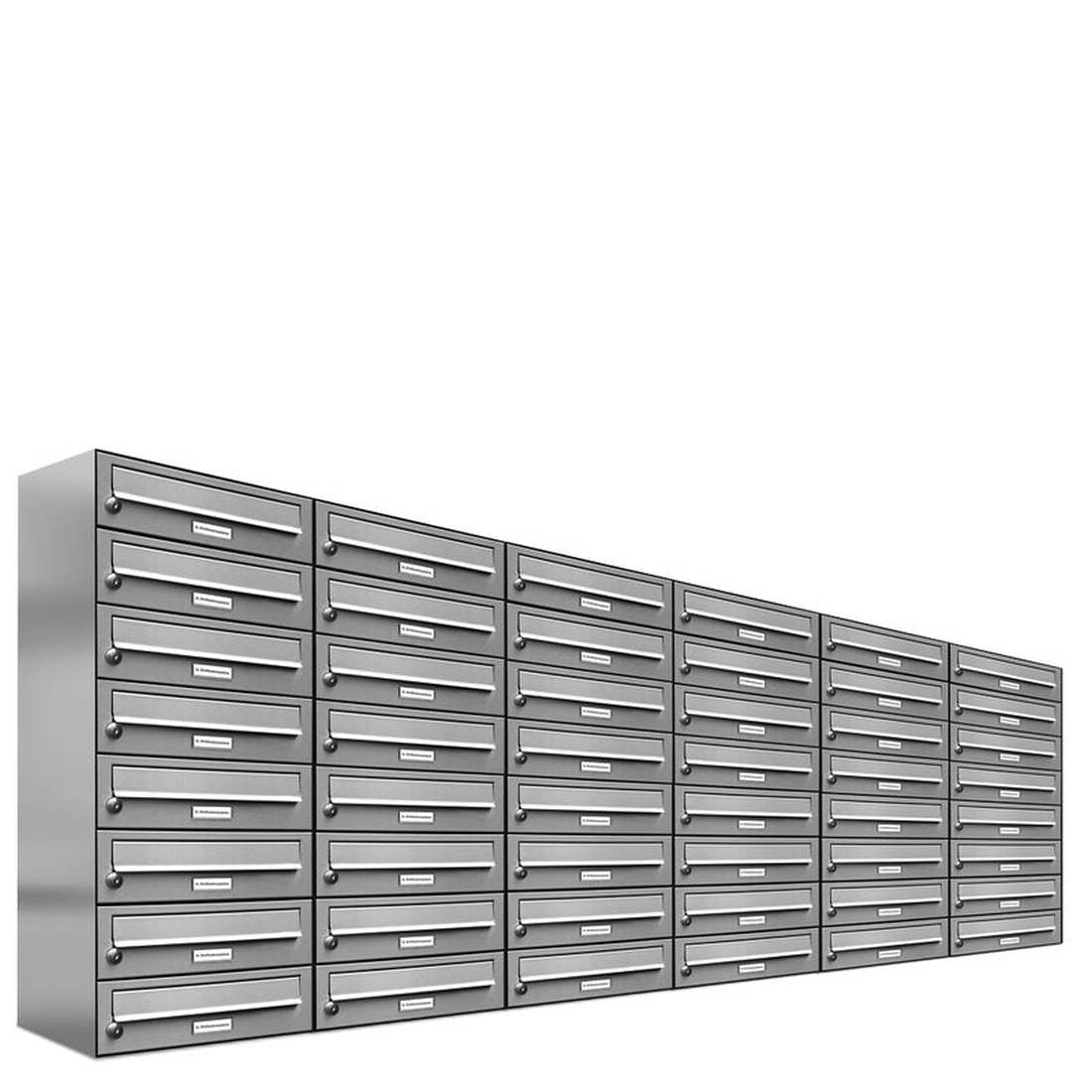 AL Briefkastensysteme 48 Fächer Premium Edelstahl Wand Briefkasten Anlage für Post A4, modern, robust und wetterfest, Artikelnummer: 132V48EA6