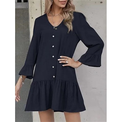 Per donna Mini Abito Abiti in cotone e lino Abito a Tubino Vestito Casual Moda Essenziale Moderno Manica del polsino svasato Quotidiano All'aperto Vacanza Vestibilità regolare Vestibilità comoda