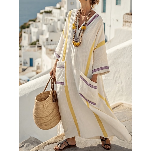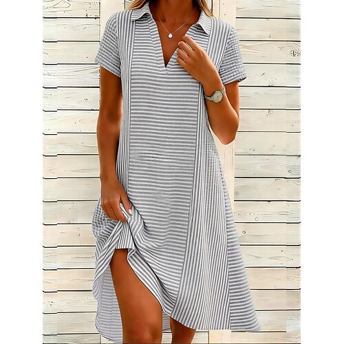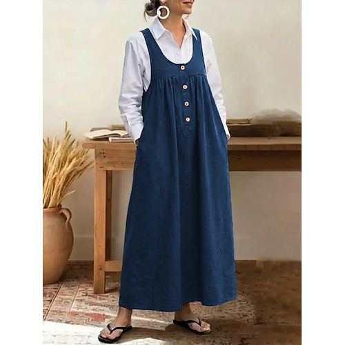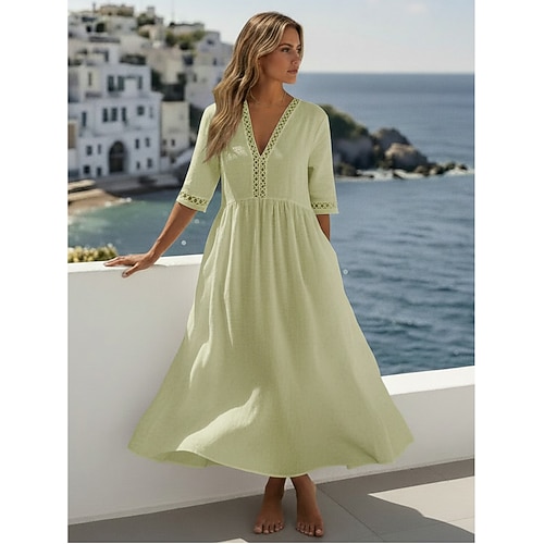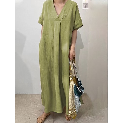 Per donna Abito Midi 100% cotone Abito a Tubino Abiti in cotone e lino Vestito Casual Essenziale Classico Casual Quotidiano All'aperto Vacanza Vestibilità comoda Semplice Mezza Manica Scollo a V