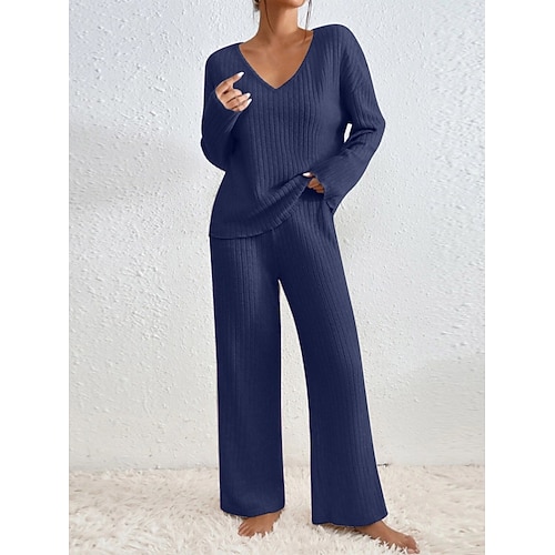 Per donna Set di Pantaloni Manica Lunga Scollo a V Tinta unica Moda Streetwear Casuale Quotidiano All'aperto Blu Nero Verde militare Primavera Vestibilità comoda