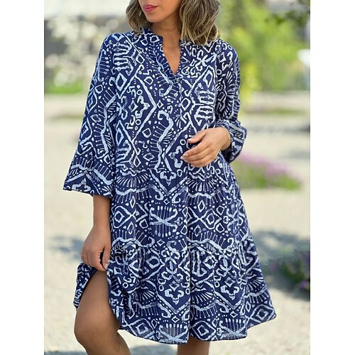 Per donna Mini Abito Abito a Tubino Vacanza Casual All'aperto Uscire Vestibilità comoda Floreale Manica 3/4 Scollo a V Nero Fucsia Verde Blu scuro Estate Primavera