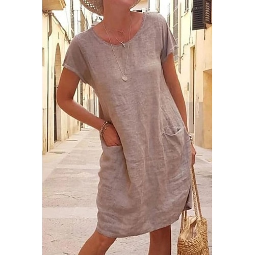 Per donna Mini abito Vestito Casual Vestito T-Shirt Abito in finto lino Moda Moderno Quotidiano Vacanza Uscire Vestibilità comoda Semplice Manica Corta Girocollo Nero Cachi Grigio Azzurro Estate