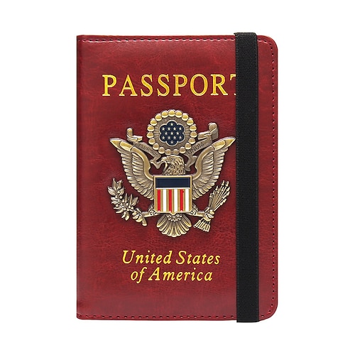 Portapassaporto con blocco RFID per uomo e donna, portafoglio da viaggio in pelle per passaporto con badge metallico 3D, accessori per la custodia dei documenti di viaggio