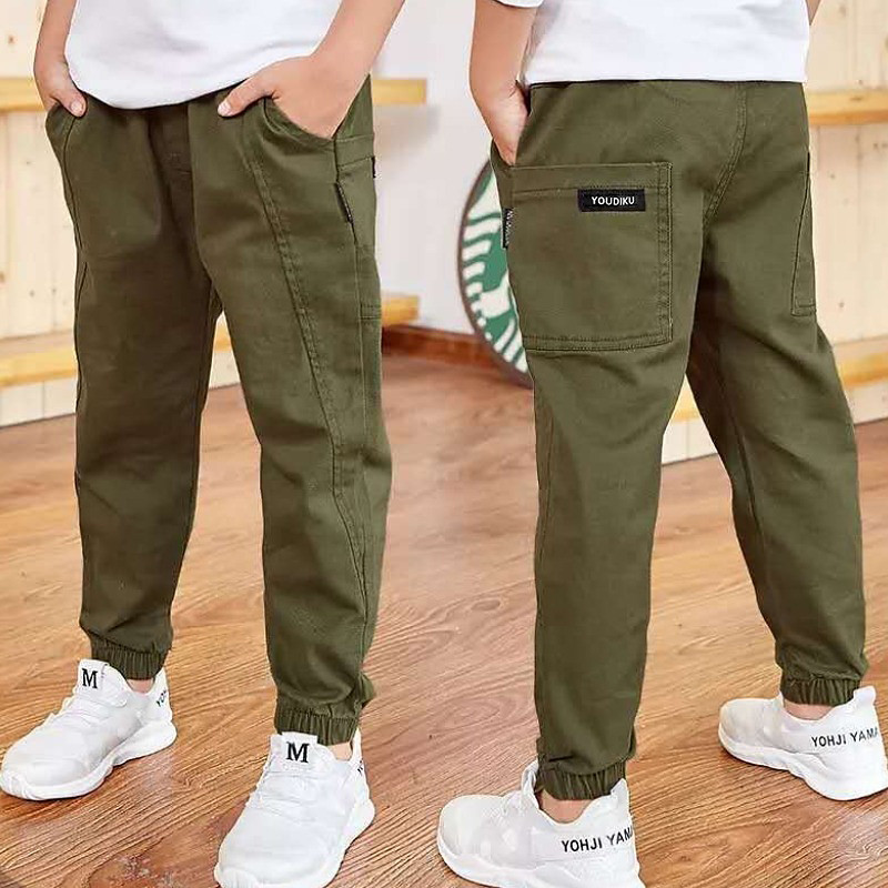 Boys 3D Solid Colored Pants Spring Fall Active Basic Kids 3-13 Years Casual Daily Regular Fit
