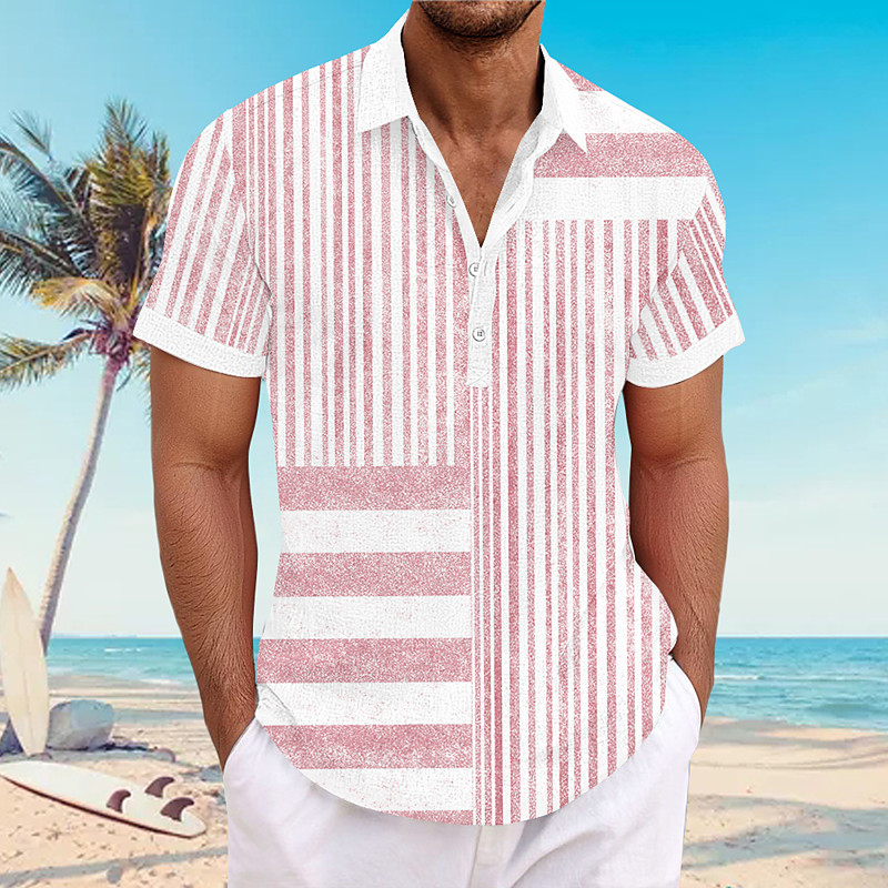 Men's Geometic Casual Shirt Button Up Shirt Short Sleeve Casual Causal Casual Summer Spring V Neck Buttons Pink Blue Green