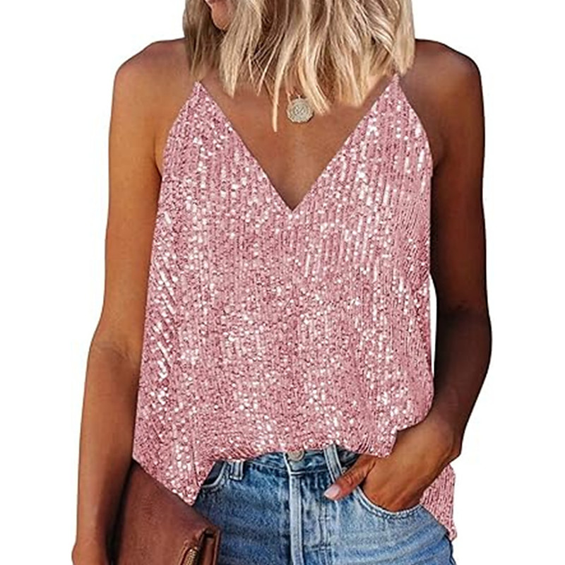 Women's Camisole Tank Top Solid Color Stylish Casual Sleeveless Strap Regular Tops Daily Sequins Silver Black Champagne Yellow Pink Summer Spring