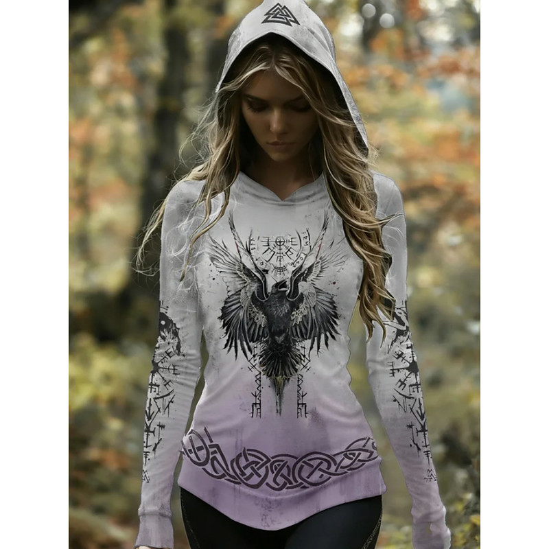 Women's Viking Pullover Hoodie Sweatshirt Graphic Animal Geometric Casual Long Sleeve Hooded Regular Tops Casual Sports Light Purple Spring Fall