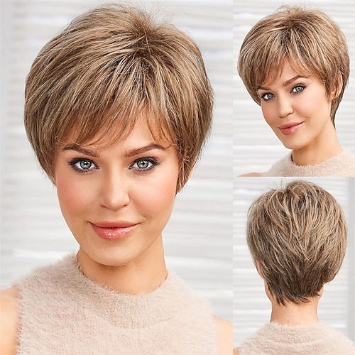 Kurze Perücken für Frauen, Memory-Faser, simuliertes menschliches Haar, Pixie-Lockenperücke mit Bangnatural-Haar für den täglichen Gebrauch