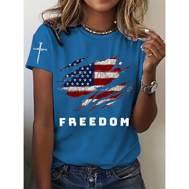American Independence Day Women's T Shirt Graphic American Flag Vintage Stylish Classic Short Sleeve Crew Neck Regular Tops Daily Weekend Print Blue Black White Red Gray Summer Spring