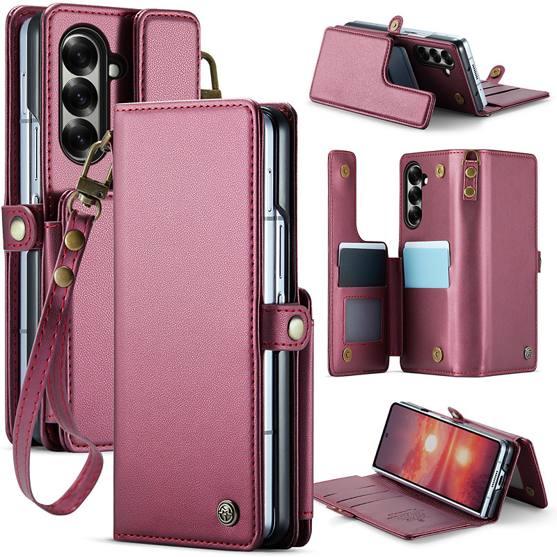 telefono Custodia Per Samsung Galaxy Z Fold 6 Custodia Portafoglio con Supporto Cerniera con Cordino Retrò vera pelle TPU