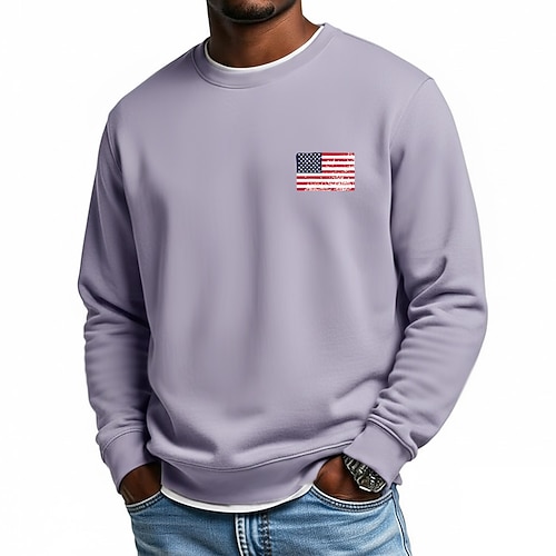 Giorno dei Veterani dell'Anniversario dei 250 Anni dell'America USA Felpa Uomo Bandiera Americana Moda Quotidiana Casual Maniche Lunghe Collo a Giro Home Sport Outdoor Streetwear Azzurro Chiaro Viola