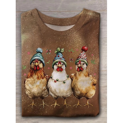 Natale Donne T-shirt Grafica Animale Vintage Moda Stile Maniche Lunghe Collo a Giro Regular Tops Quotidiana Weekend Stampa Grigia Rossa Rossa Blu Navy Blu Verde Scuro Autunno Inverno