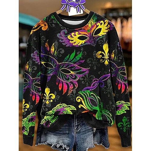 Felpa Pullover da Donna Carnival Maglietta Grafica Astratta Casual Maniche Lunghe Collo Giro Regular Tops Moda Quotidiana Bianco Viola Verde Arcobaleno Primavera Inverno