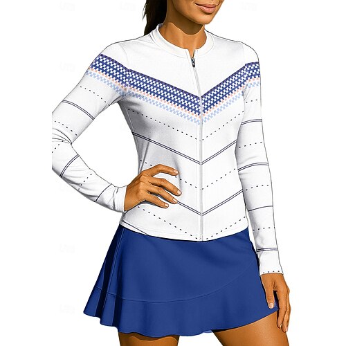 Per donna Geometrico Maglietta sportiva Maglia da tennis Manica Lunga Cerniera Floreale UPF50 Resistente ai Raggi UV Alta elasticità Traspirante Pallavolo Tennis Golf Collo Alto Collo alla coreana