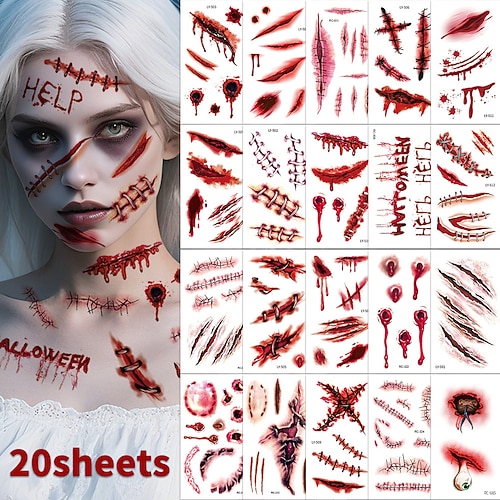 20 Stück lustige Halloween-Kostümeamp;Gruselige Gesichtsaufkleber für Erwachsene, Körper- und Gesichtsdekorationen, Kostümparty-Streiche, gruselige Gesichtsaufkleber, Kostümzubehör, Horror-Make-up,