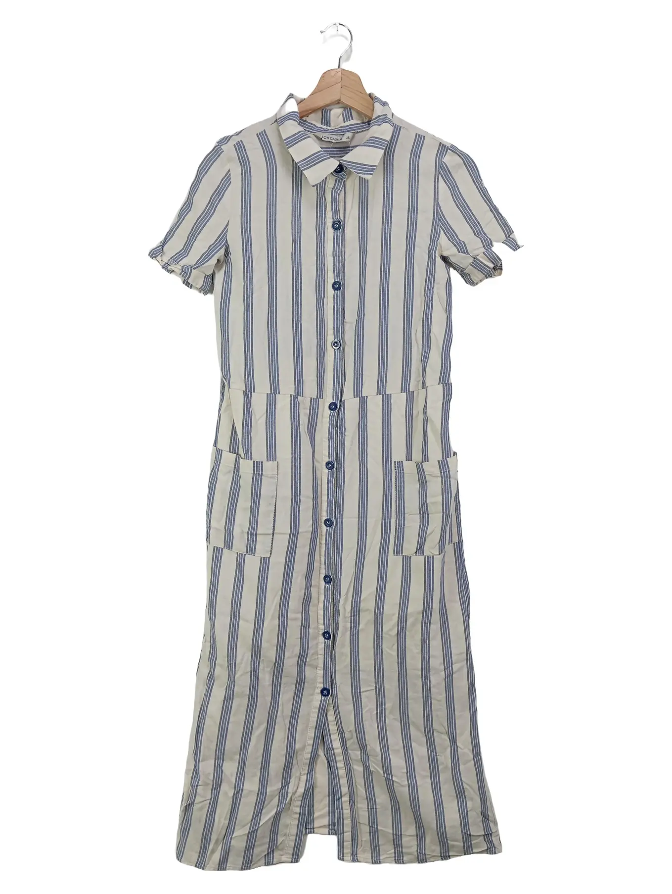 LC WAIKIKI Blusenkleid XS 34 Blau Weiß Gestreift Midi