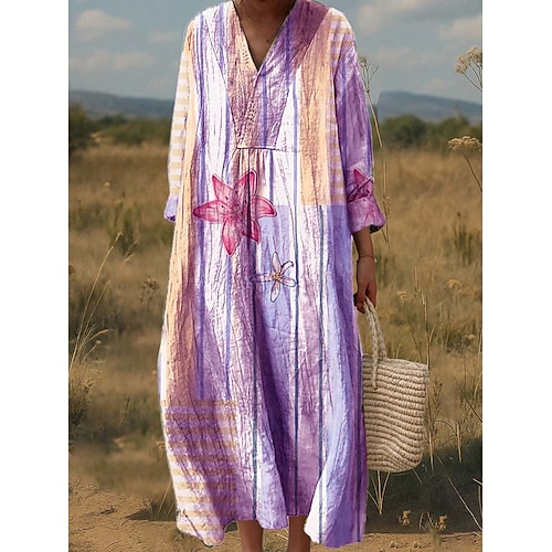 Per donna Abito Midi Vestito Estivo Abito a trapezio Vacanza Casual Boho Uscire Spiaggia Vestibilità comoda Floreale Grafico Geometrico Manica Lunga Scollo a V Rosa Marrone chiaro Blu Verde Primavera