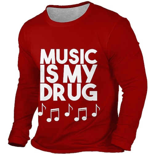 Herren Musik Lustiger Slang T Shirt Langarm T-Shirt 3D-Druck Rundhalsausschnitt Hemd Mode Täglich Basic Lässig Täglich Straße Blau Schwarz Rote Sommer Frühling Bekleidung S M L XL XXL XXXL