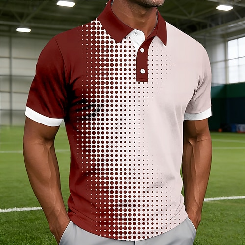 Herren Geometrisch Linie Sport-Poloshirts Kurzarm Polo-Shirts Hemden mit Kragen Lässig Athleisure Alltagskleidung 3D-Druck Knöpfe Sommer Frühling Blau Rote Purpur