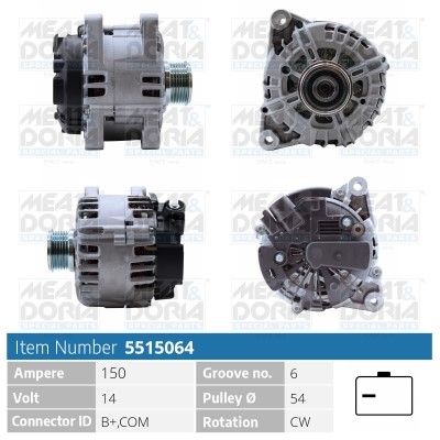 Laturi 14V 150A Meat & doria 5515064 - citroën, ds, fiat, mitsubishi, peugeot, volvo - OE 16 068 591 80, 5702 J9, 5705 KV