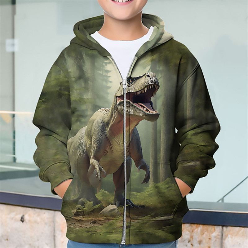 Boys 3D Dinosaur Hoodie Coat Outerwear Long Sleeve Spring Fall Adorable Sport Kids 4-12 Years Zip Street Daily Regular Fit