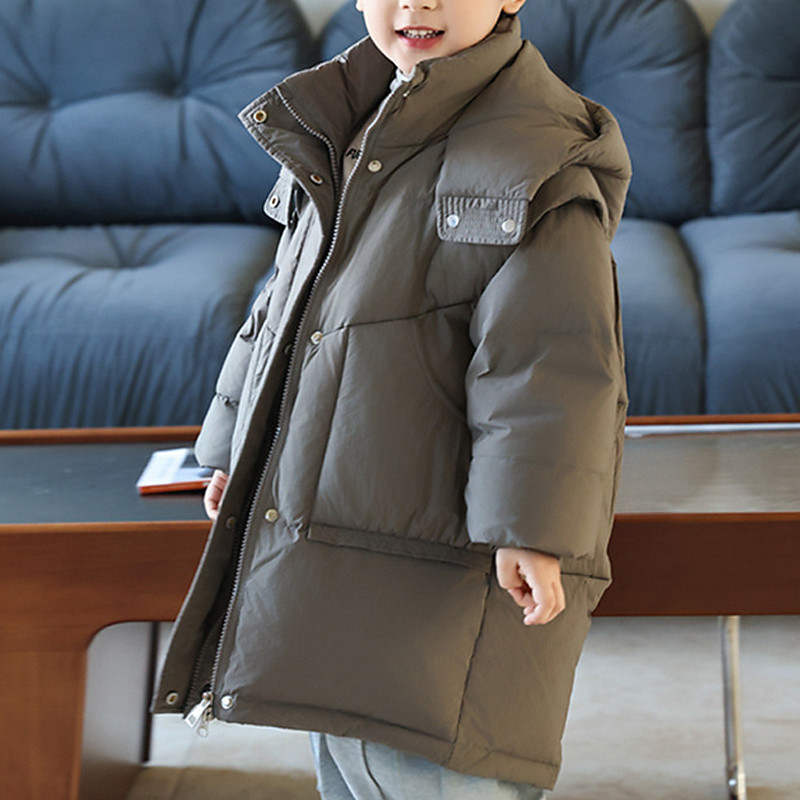 Kids Unisex Down Jacket Outdoor Jacket Puffer Jacket Outerwear Color Block Long Sleeve Keep Warm Windproof Coat Outdoor Daily Basic Black Green Gray Fall Winter 4 years
