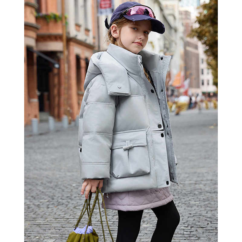 Kids Girls' Down Jacket Puffer Jacket Solid Color Sports Pocket Keep Warm Windproof Outdoor Coat Outerwear 4-12 Years Winter Black White Pink