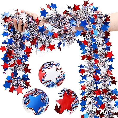 4-teiliges Set roter, weißer und blauer Sternengirlanden zum Unabhängigkeitstag, 200 cm lange patriotische Sternenquastengirlanden, geeignet für Feierlichkeiten zum 4. Juli, Feiertagspartys,