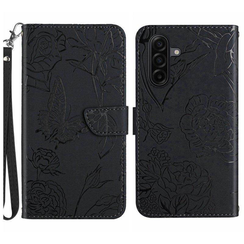 Samsung Galaxy S26 Pro Plånboksfodral Konstläder Blomtryck - Svart