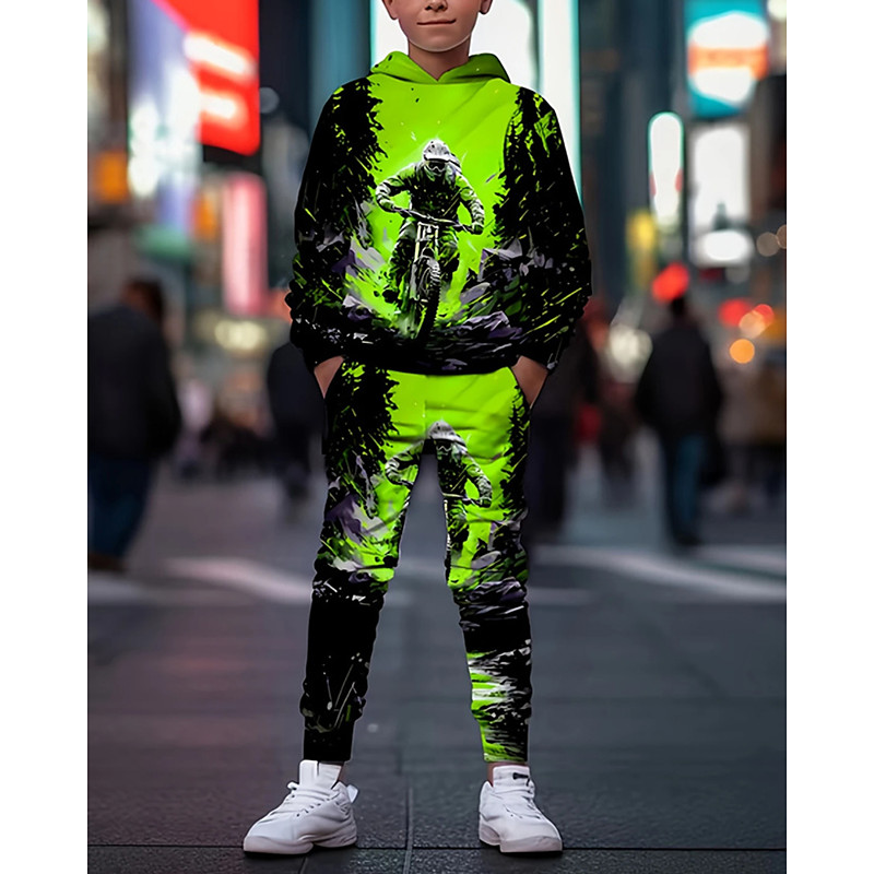 Boys' 3D Graphic Motorcycle Hoodie Sweatpants Set Sports Suit Tracksuits Long Sleeve Spring Fall Daily Basic Casual Kids 4-12 Years Hooded Outdoor Vacation Sports Tailored Fit