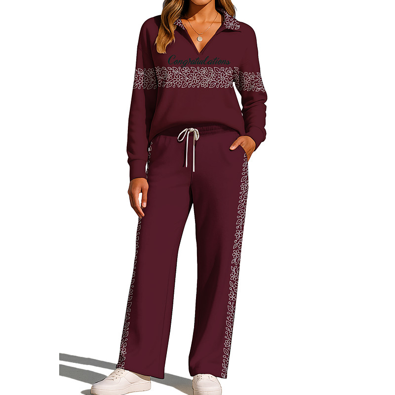 Women's Elegant Warm Fashion Two Piece Sets Tracksuit Pants Sets Long Sleeve Bishop Sleeve Crew Neck Graphic Letter Print Outdoor Vacation Daily Black Pink Dark Pink Spring Regular Fit