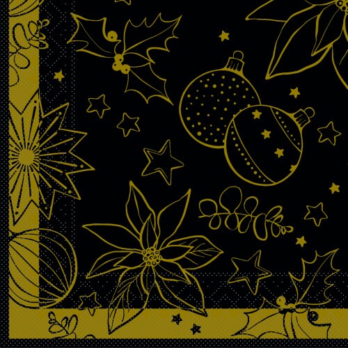 Tissue Serviette Milan in Schwarz, 33 x 33 cm, 100 Stück - Mank - Weihnachtssserviette Weihnachtskugeln Amaryllis