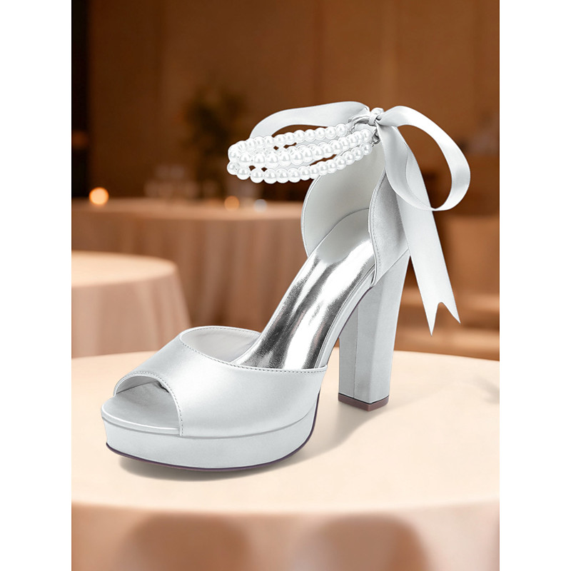 Women's Purple Satin Platform High Heel Sandals with Pearl Ankle Strap - Glamorous Open Toe Party Shoes for Evening, Wedding and Cocktail Events