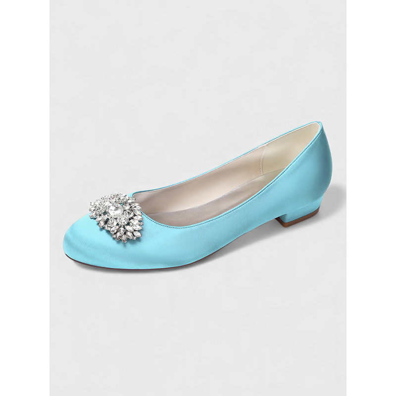 Women's Elegant Satin Flats with Rhinestone Embellished Toe – Classic Round-Toe Dress Shoes for Ladies, Perfect for Formal Events, Weddings, Parties Refined Everyday Wear