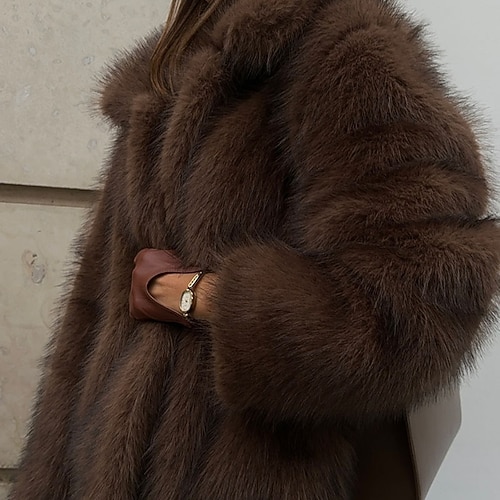 Per donna Cappotto Invernale Cappotto Cappotto in Pelliccia Sintetica Antivento Caldo Tasca Aperturaanteriore Elegante Moda Classico Moderno Tinta unica All'aperto Vacanza Streetwear Abbigliamento