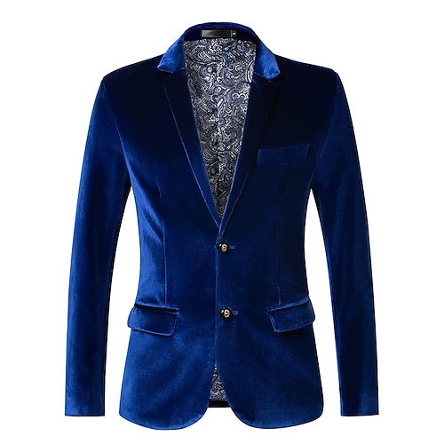 Per uomo Giacca blazer Formale Matrimonio Anniversario Elegante Vintage Autunno Inverno Poliestere Velluto Tinta unica Monopetto Giacca Blu Nero Rosso Verde