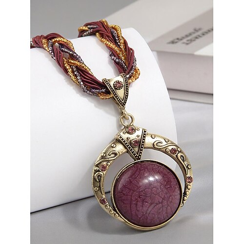 Collana in lega bohémien da donna con corda di perline multicolori, ciondolo dal design unico, perfetta per un abbigliamento casual e da festa