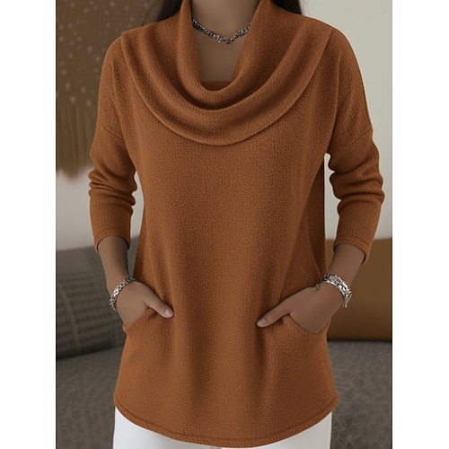 Per donna Blusa Tinta unica Elegante Casual Manica Lunga Scollo a Cascata Top Regolari Quotidiano Arricciato Tasca Rosso Blu Marrone Primavera Autunno Inverno