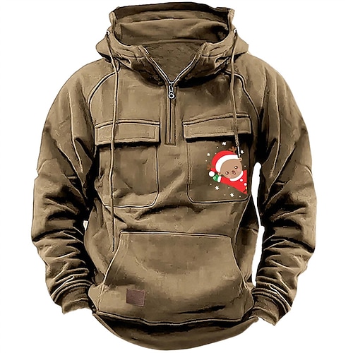 Per uomo Felpa con cappuccio Felpa con cappuccio e zip corta Nero Rosa Vino Blu Verde Con Cappuccio Babbo Natale Ogni Coulisse Tasca Sport Outdoor Quotidiano Ferie Natale Streetwear Casual